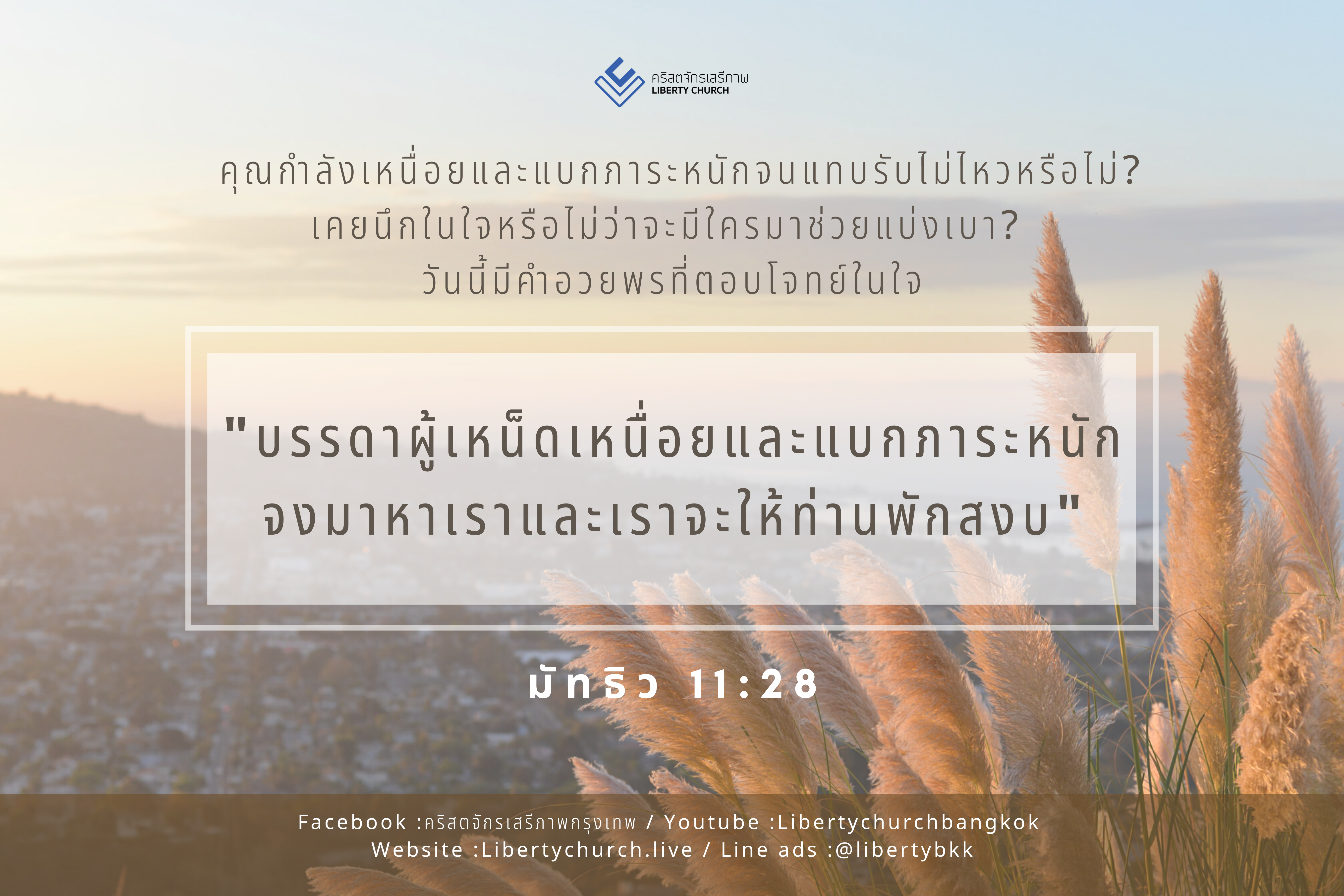 "บรรดาผู้เหน็ดเหนื่อยและแบกภาระหนักจงมาหาเรา และเราจะให้ท่านพักสงบ" (มัทธิว 11:28)